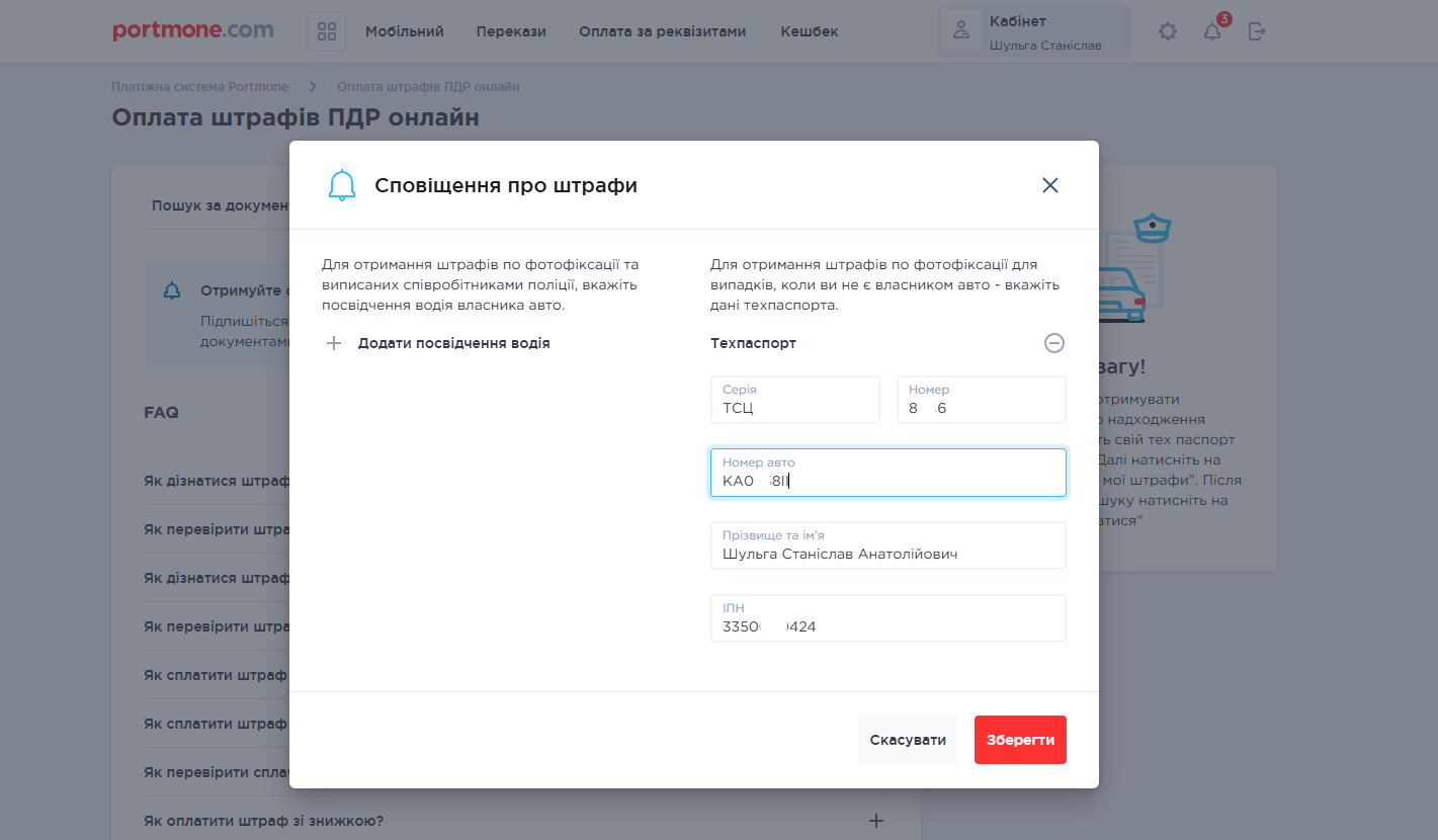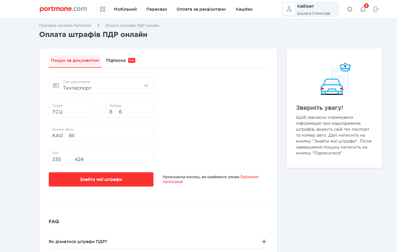 Оплата адміністративного штрафу на Portmone: покрокова інструкція